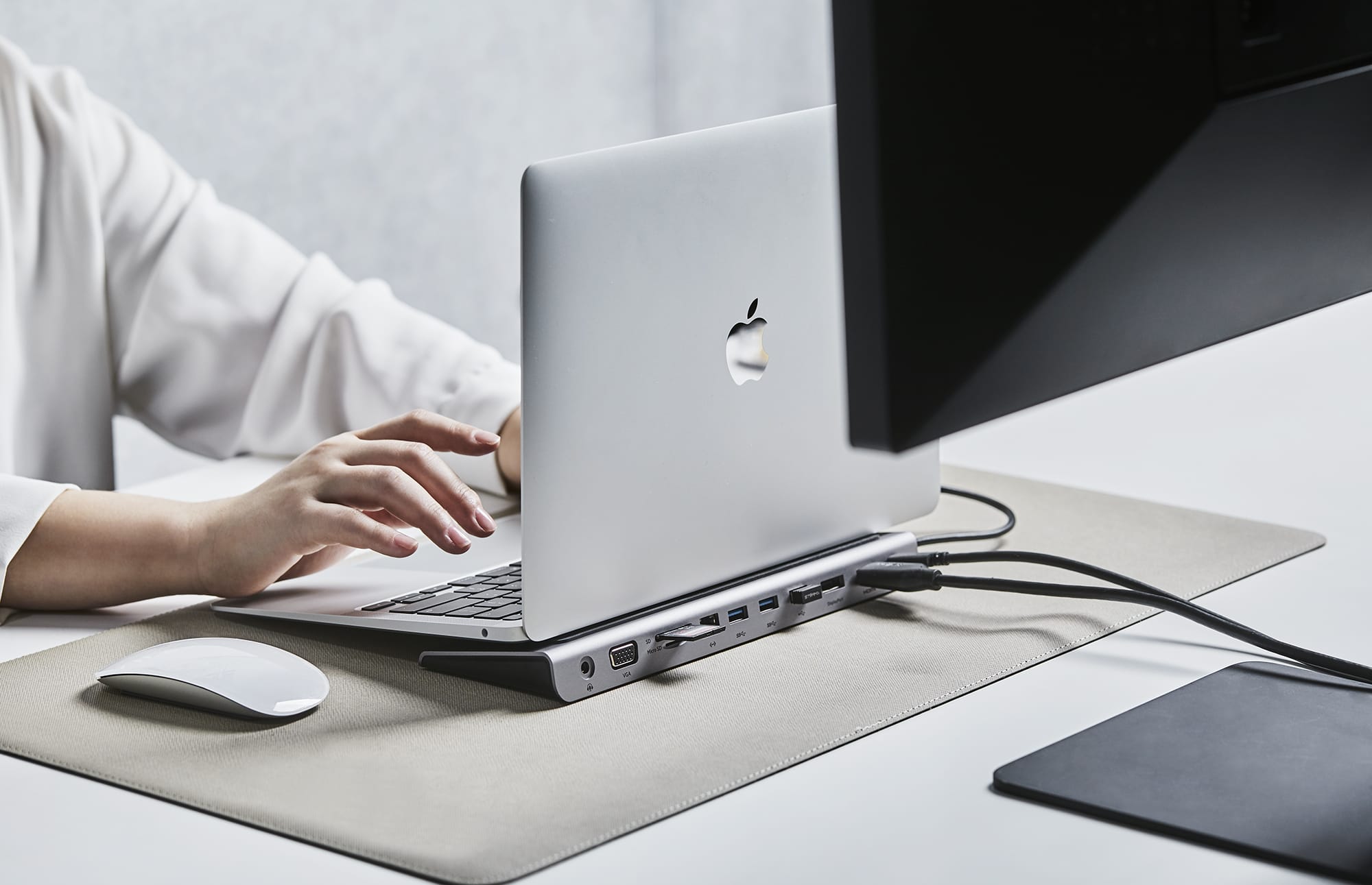 「CONNECT USB-C 11-in-1マルチポートドック」は、ノートパソコンスタンドとして使えるUSB-Cドッキングステーションで、USB 3.0×2、USB 2.0、Power Delivery対応USB Type-C、HDMI 1.4、DisplayPort 1.2、VGA、ギガビットEthernet、SD 3.0カードリーダー、Micro SD 3.0カードリーダー、オーディオジャックを搭載しています。最大100Wのパススルー充電に対応しています。