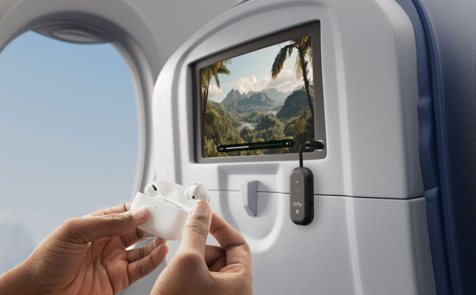 AirFly Pro 2は、3.5mmオーディオジャックを搭載する機内エンターテイメントシステム、スポーツジムのマシン、iPodなどに挿してBluetoothヘッドフォンを使用できる送信モードと、AUXポートを搭載するカーオーディオ、ホームスピーカーなどに挿してiPhoneなどの音楽をワイヤレスで再生できる受信モードを利用できます。