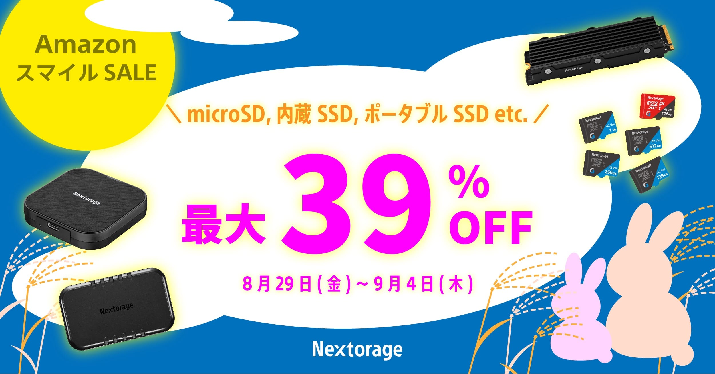 Nextorage株式会社が、8月29日(金)午前9時から9月4日(木)まで開催の「スマイルSALE」にて、対象のイメージング製品ゲーミング製品を最大39%オフで提供しています。