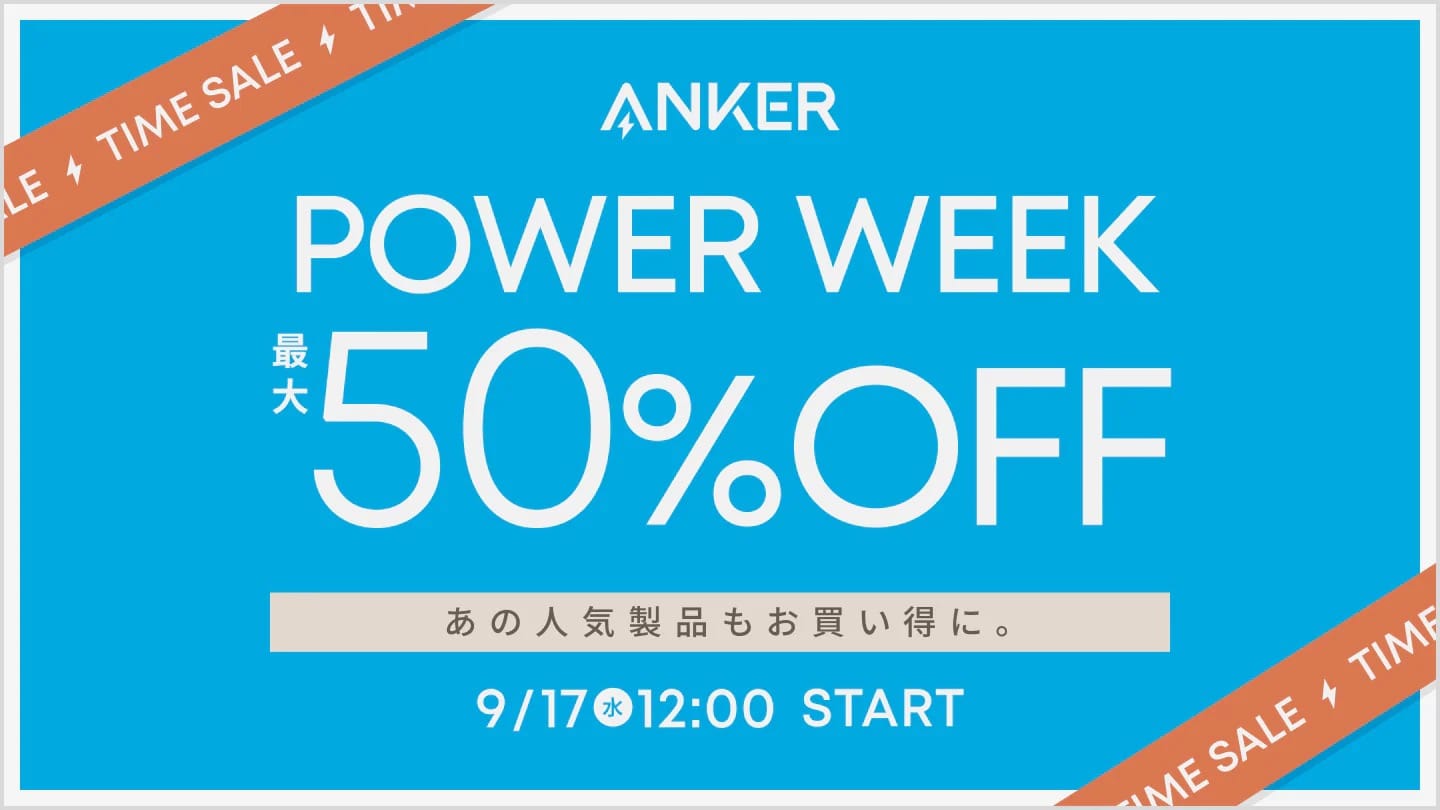 アンカー・ジャパン株式会社が、9月17日(水)正午よりポータブル電源などを最大50%オフで提供する「Anker Power Week」を開催すると発表しています。