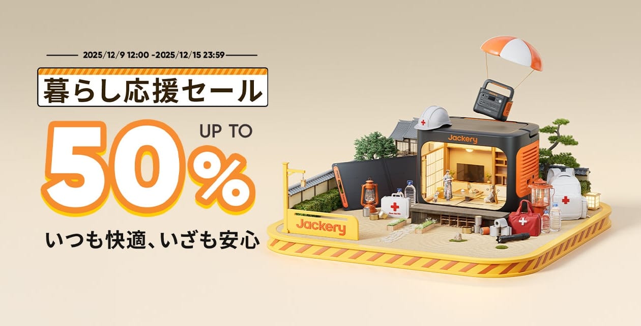 株式会社Jackery Japanが、ポータブル電源を最大50%オフで提供する暮らし応援セール