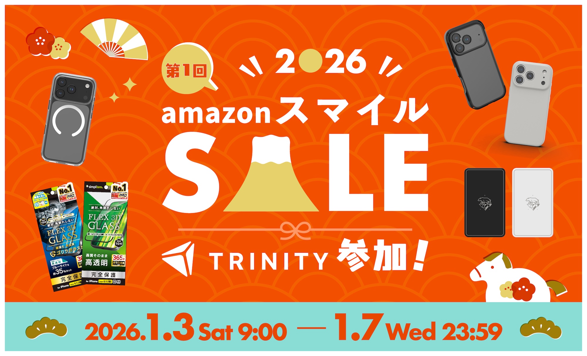 トリニティ株式会社が、1月3日(土)午前9時から1月7日(水)まで開催の「Amazon スマイルSALE 初売り」にて、スマートフォンアクセサリなどの対象製品を特別価格で提供すると発表しています。