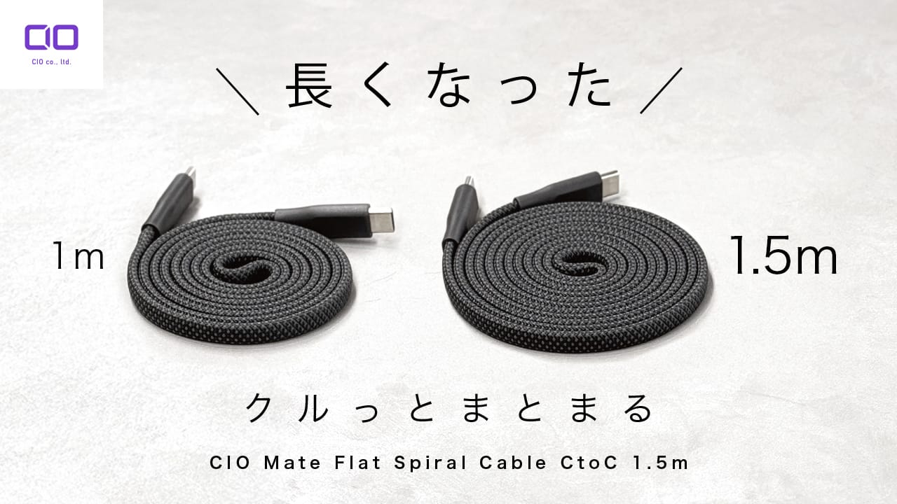株式会社CIOが、磁石でまとまるUSB-Cメッシュフラットケーブル「Flat Spiral Cable」の1.5mと、「スパイラルシリコンケーブル C to HDMI」の2mを発売すると発表しています。
