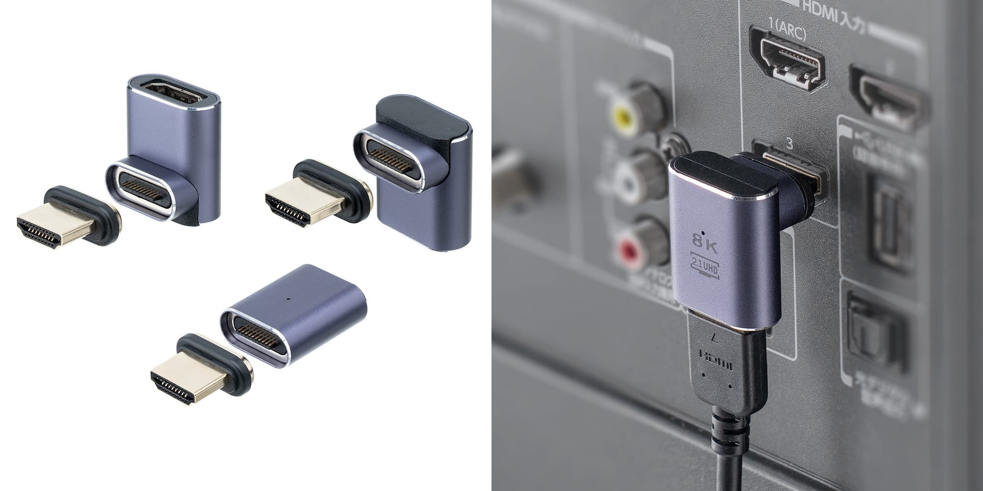 サンワサプライ株式会社が、HDMIコネクタ部分をマグネット式に変換するアダプタ3タイプを発売しています。