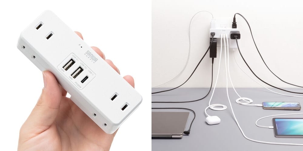 700-TAP093Wは、合計最大1,400W出力の6つのACコンセントと、最大20W出力のPower Delivery対応USB-Cポート×1、最大18W出力のUSB-Aポート×2を搭載しています。