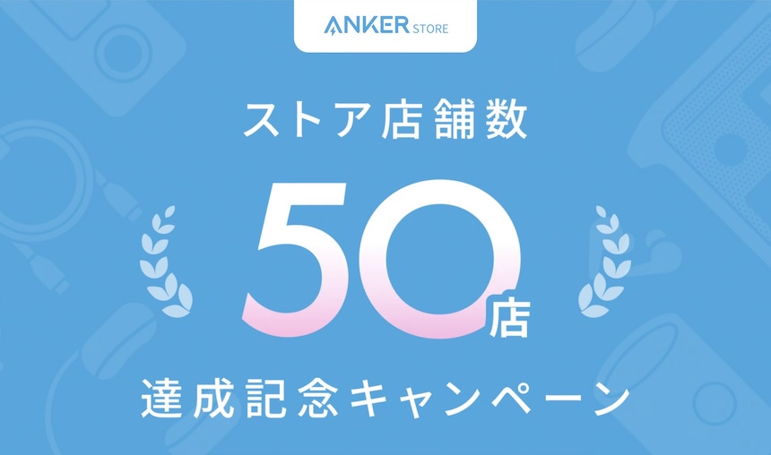 アンカー・ジャパン株式会社が、Anker Storeの店舗数が50店に達したのを記念して、店舗限定>の最大50%オフセールを実施しています。