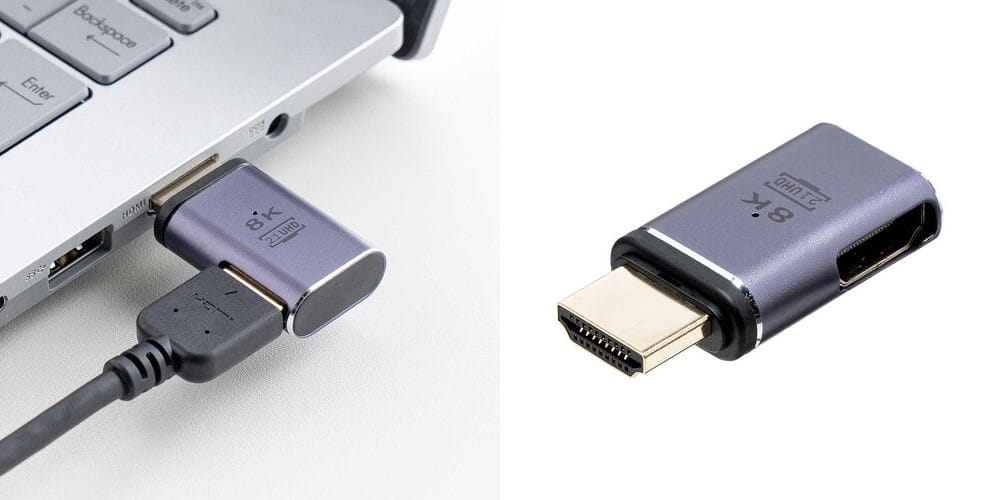 サンワサプライ株式会社が、マグネット式でL字のHDMIアダプタ「500-HD035ML」(左向き)と「500-HD035MR」(右向き)を発売しています。