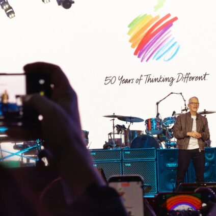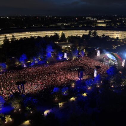 Apple Inc.が、創立50周年記念イベントの締めくくりとして、3月31日に本社のApple Parkで開催したポール・マッカートニーのライブの様子を紹介しています。