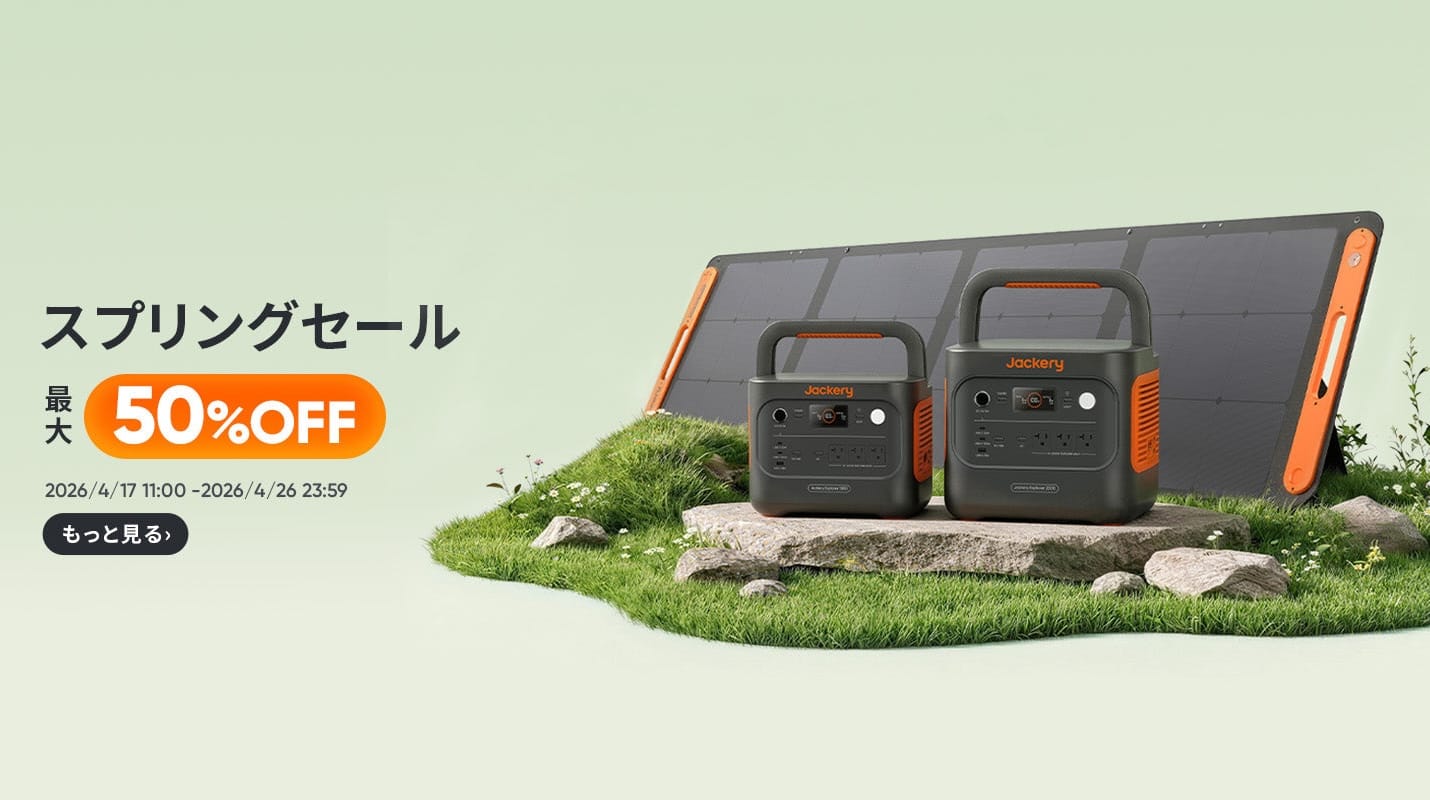 株式会社Jackery Japanが、ポータブル電源やソーラーパネルを最大50%オフで提供するスプリングセールを実施しています。