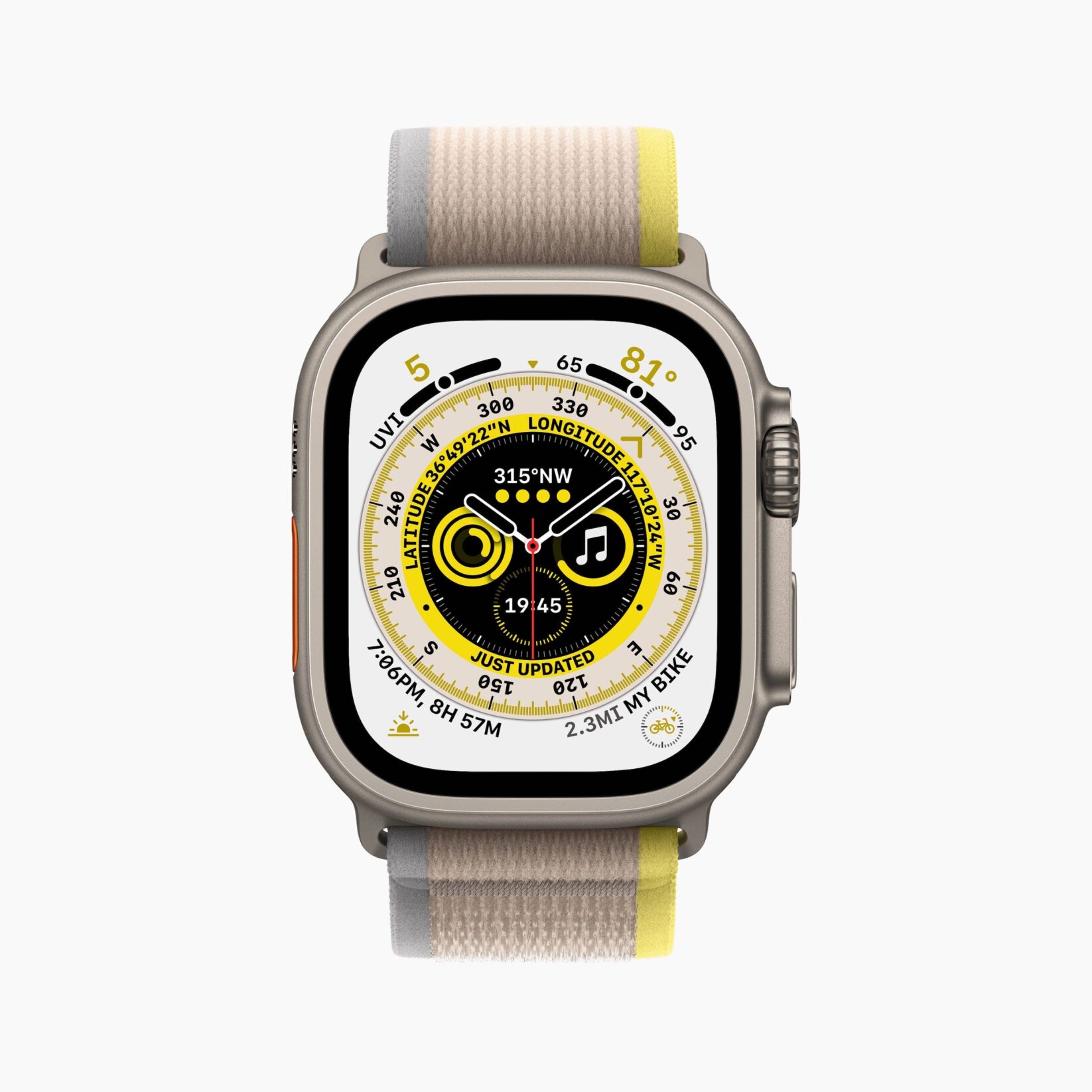 Apple-Watch-Ultra-yellow-beige-Trail-Loop-Wayfinder-face